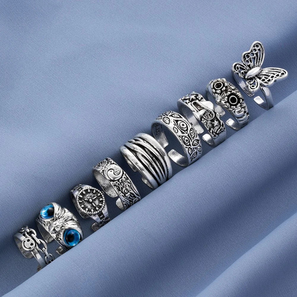 глаз лягушка колечки готика бабочка смайлик часы кольцо женское винтажные кольца для женщин кольца 2021 тренд кольца панк кольцо серебро кольцо змея винтажные украшения женские готичиские кольца