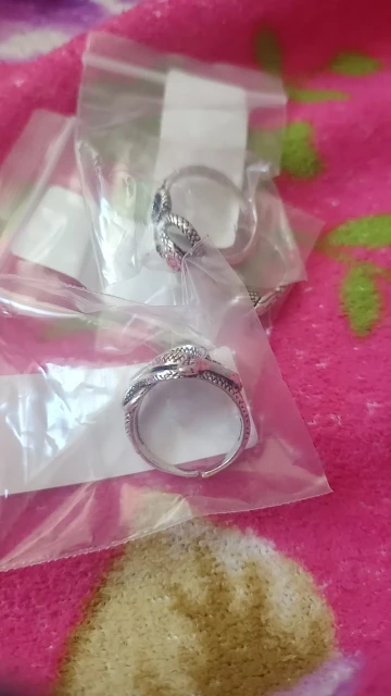 Колечки хорошие.Приехали каждое в отдельном пакете. Размер примерно 18,но они могут регулироваться. Выглядят как на фотографии