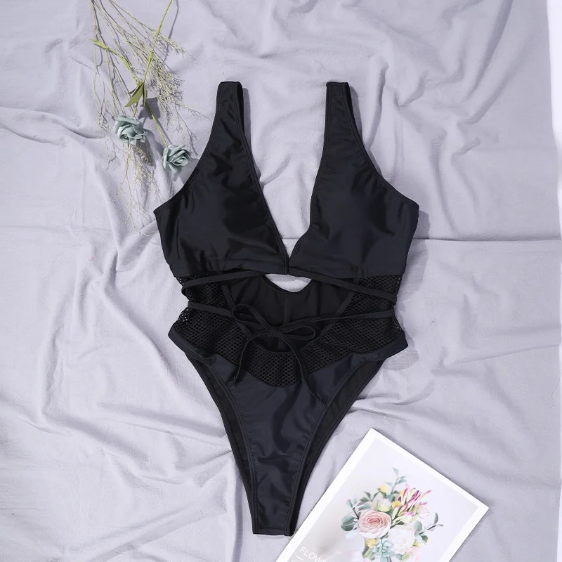 Сексуальные сетчатые слитные купальники, Женские однотонные бандажн...