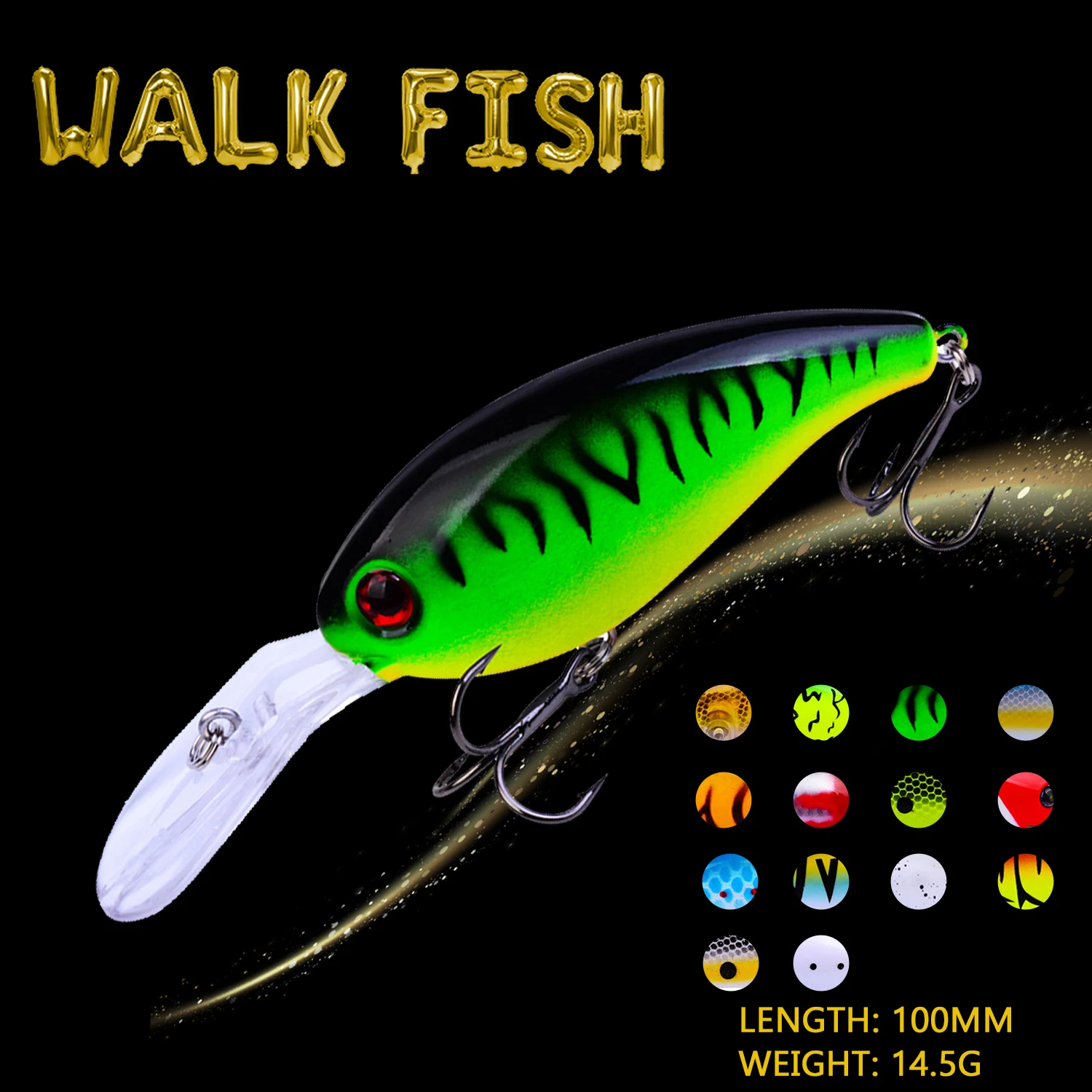 Ходить Рыба 1 шт. 100 мм/14,5 г плавающие рыболовные приманки, Искусственные воблеры рыболовные твердые приманки с большими губами бас щука приманки