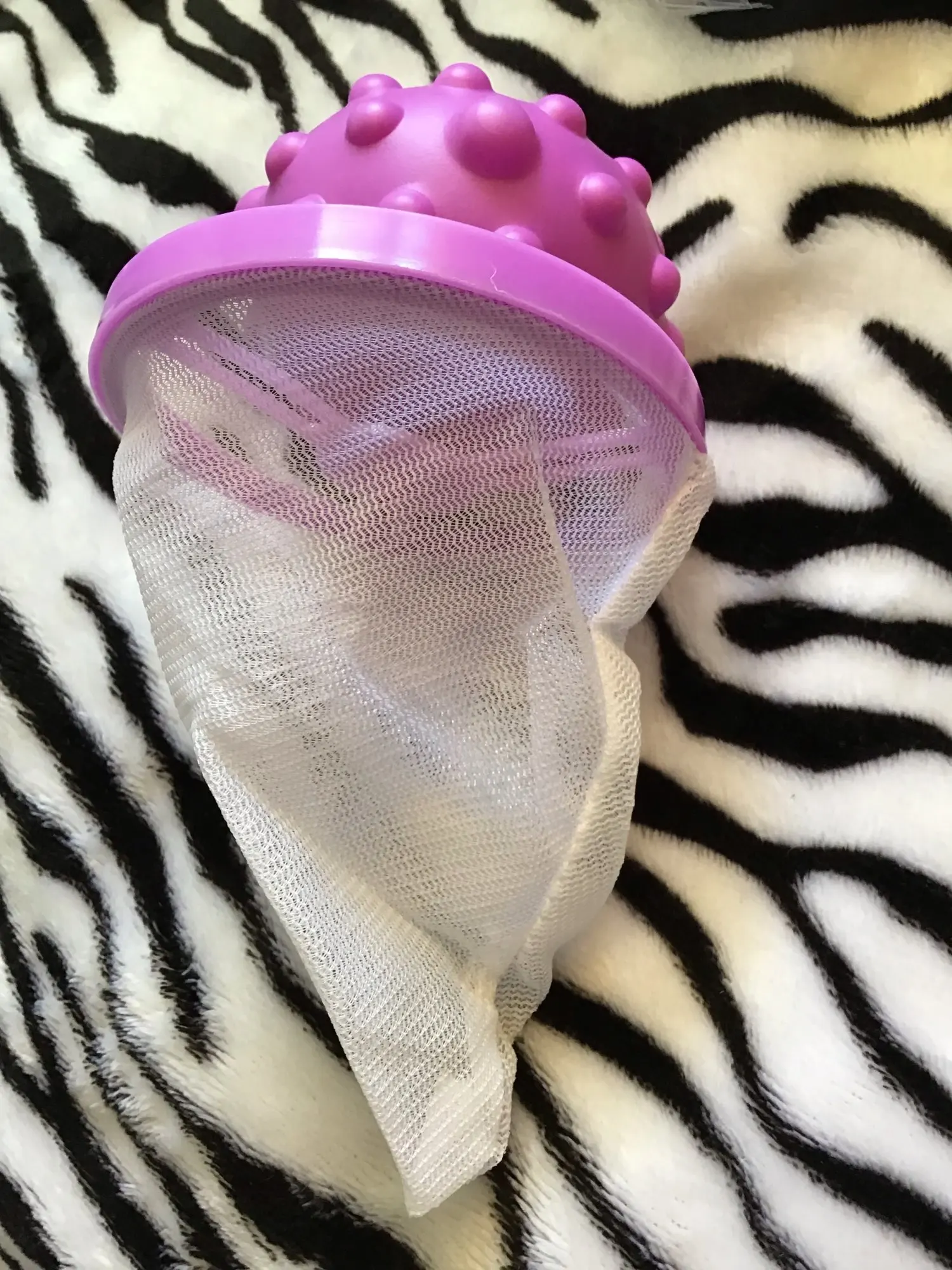 Впитывает одежду в крошку волос, нить, мусор в сетку при стирке в машине.