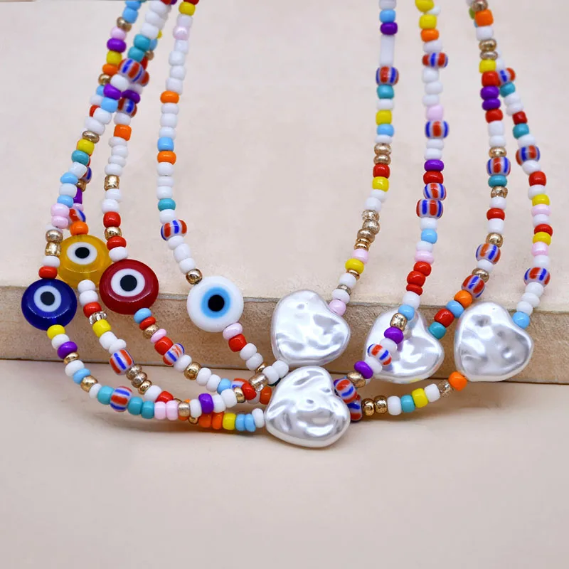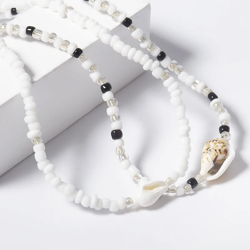 Ожерелье с белыми африканскими бусинами для женщин, ожерелье-чокер в виде ракушки, Женская цепочка на шею, чокер в стиле бохо, летние пляжные украшенияМатериалы: стеклянные бусины, искусственный жемчугЦвет: насыщенный цветДлина цепочки около 40 + 5 см/35 + 5 см/30 + 10 смВес: около 6 ~ 11 г/шт.