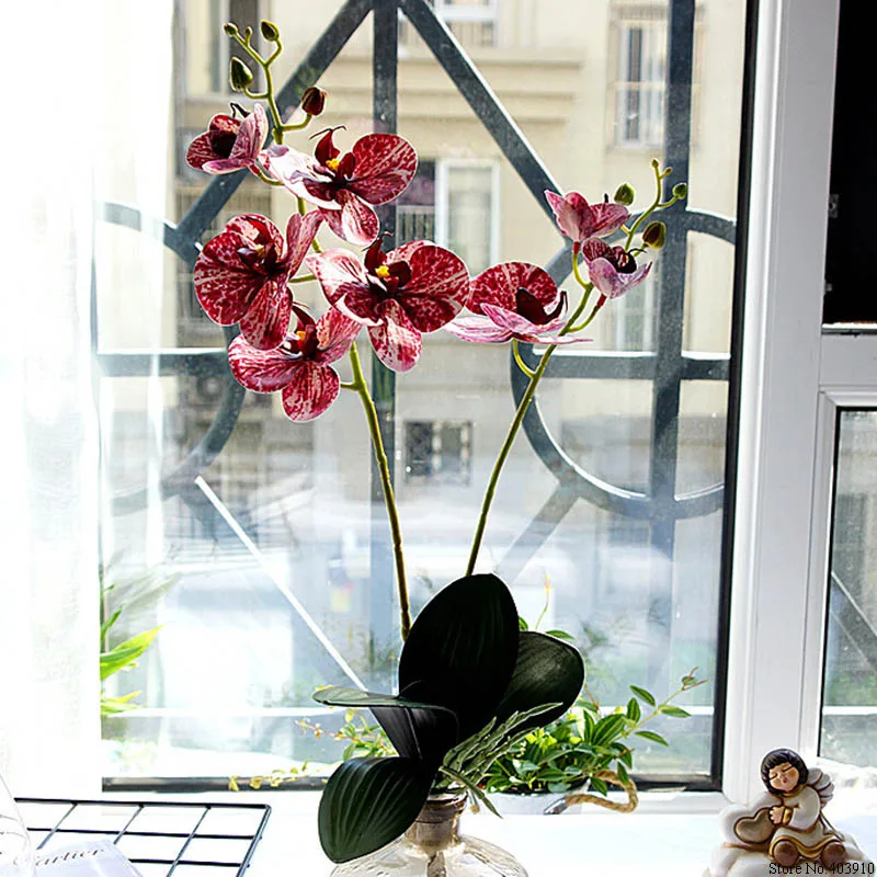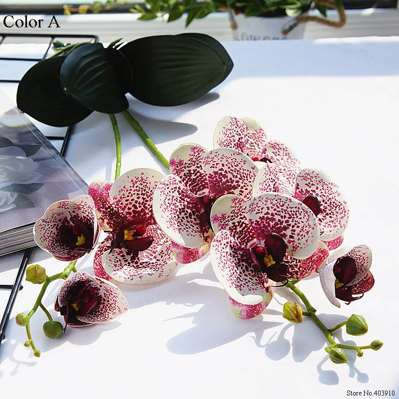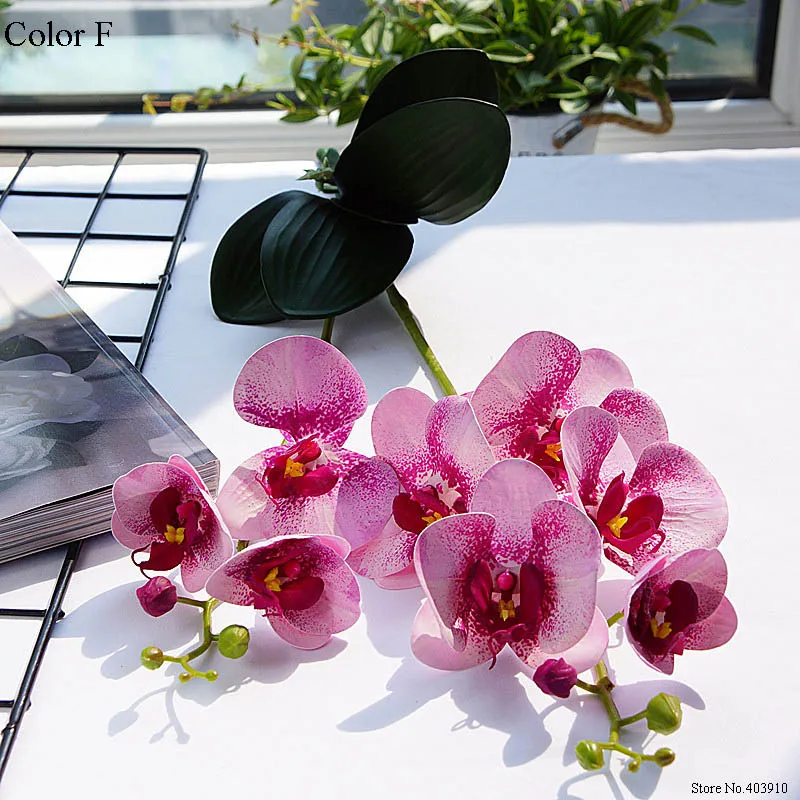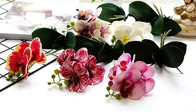 Роскошный Орхидея из латекса с листьями искусственный цветок белая бабочка Орхидея искусственный цветок для дома Свадебные украшения цветы