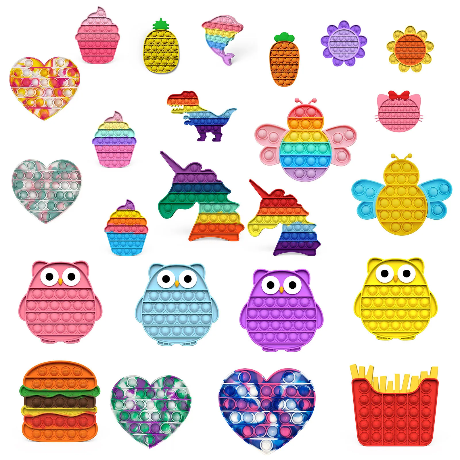 Поп-антистресс, игрушки для снятия стресса, попис, радуга, пузырь, ...