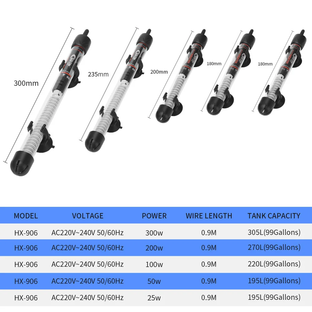 Погружной нагреватель для аквариума, 2550100200300 Вт