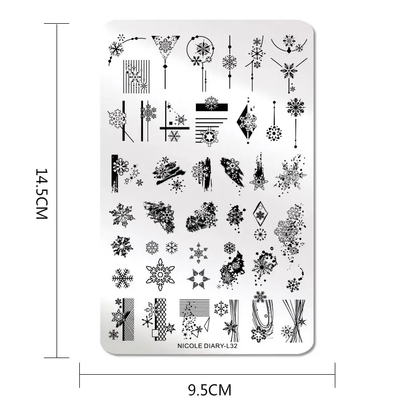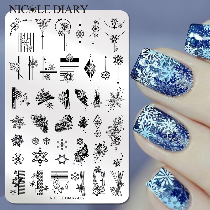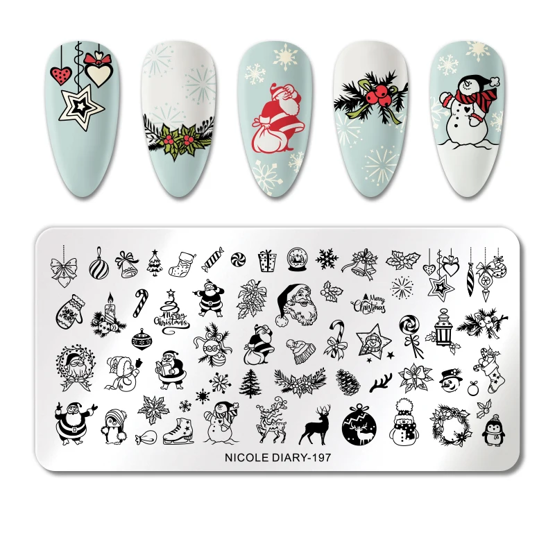 Трафареты NICOLE DIARY для стемпинга ногтей большого размера со снежинками, Рождественский штамп для ногтей, трафарет с рисунком Санта-Клауса, снега