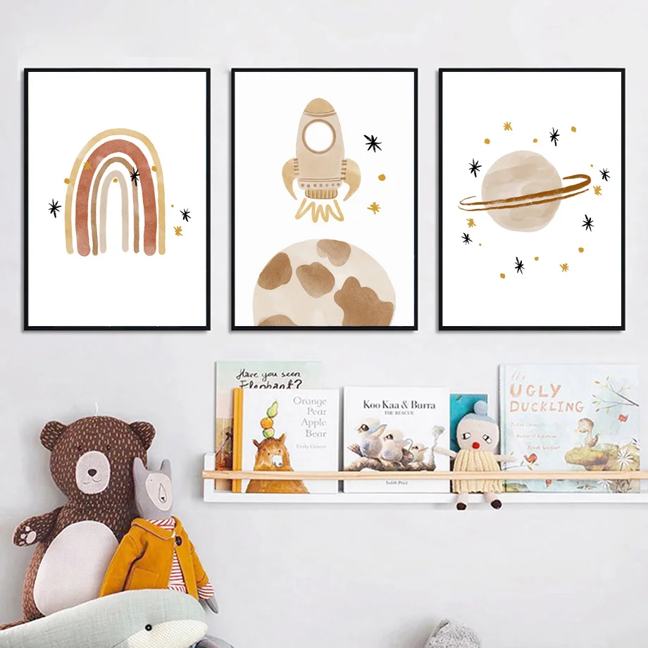 Настенная картина в стиле бохо, планеты, ракеты, звезды, луна, раду...