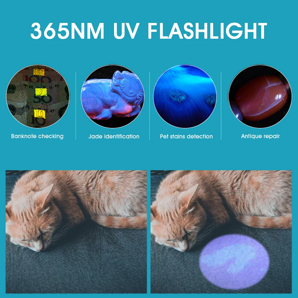 * 2. Универсальный УФ-фонарик: обнаружение поддельного клея, обнаружение банкнот, анти-подделка табака и алкоголя, обнаружение мочи и пятен домашних животных, обнаружение продуктов матери и ребенка и т. Д.