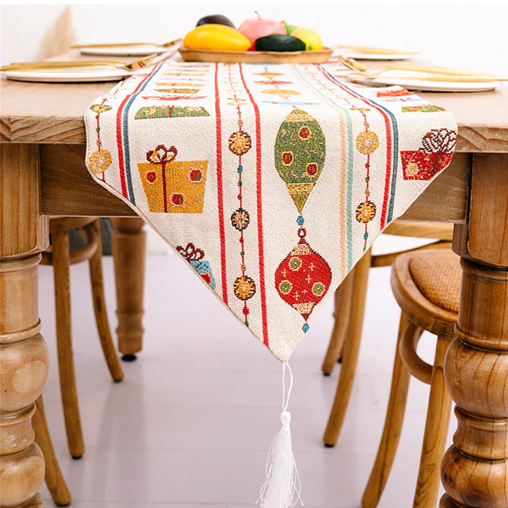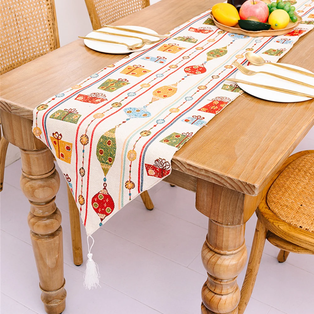 Рождественская вечеринка, льняная настольная дорожка, рандомная для...