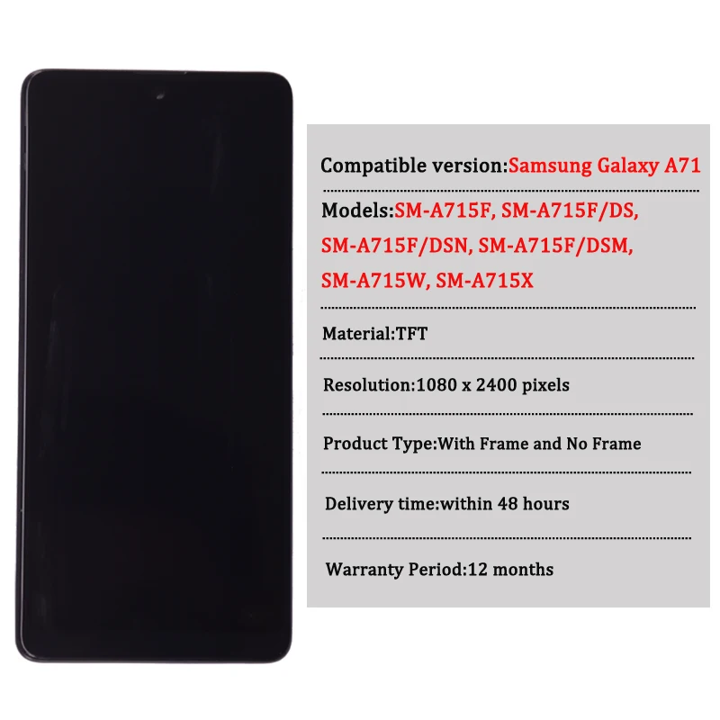 ЖК-дисплей Super AMOLED для Samsung Galaxy A71, сенсорный экран с дигитайзером в сборе и рамкой для A715 A715F A715W A715X, экран