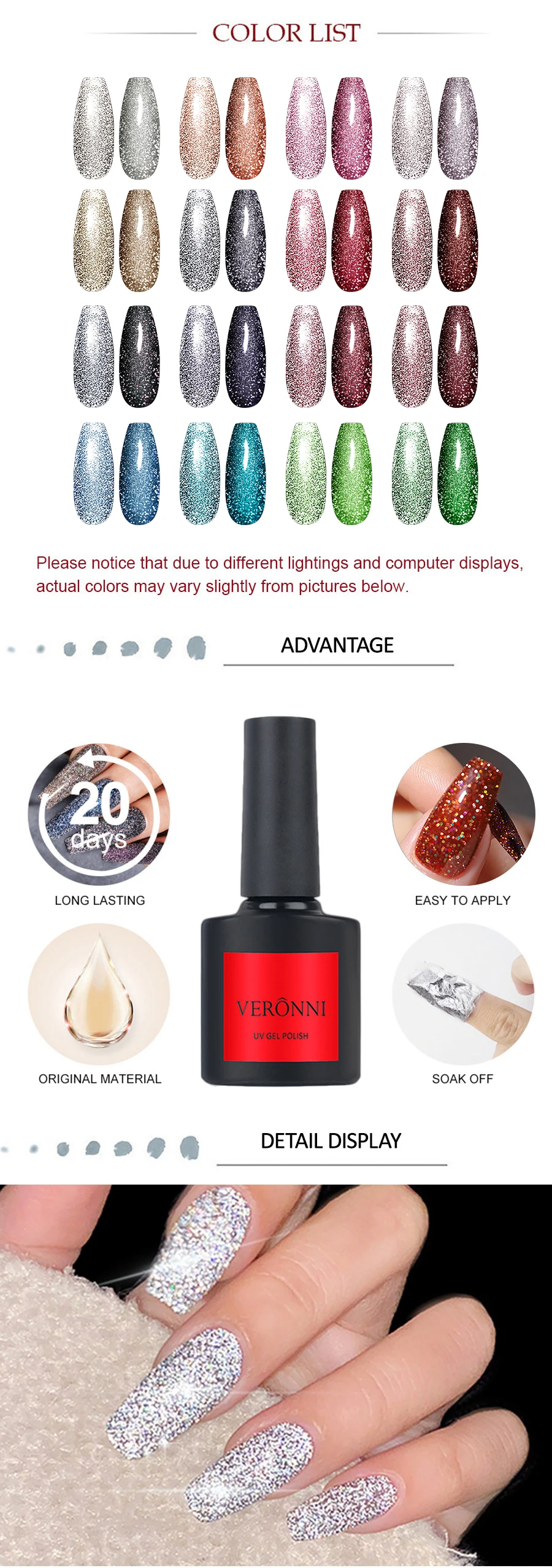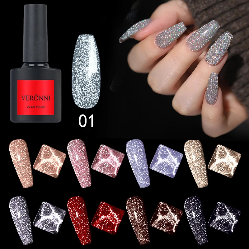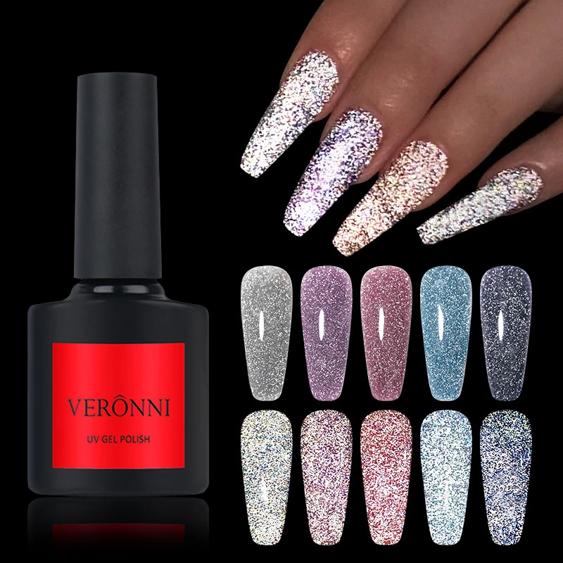 VERONNI Светоотражающая лампа 10 мл сверкающий лак для ногтей Auroras лак для ногтей полуперманентное верхнее Базовое покрытие