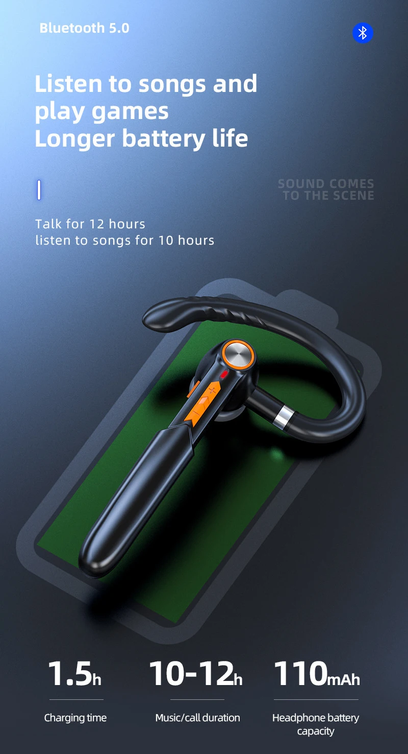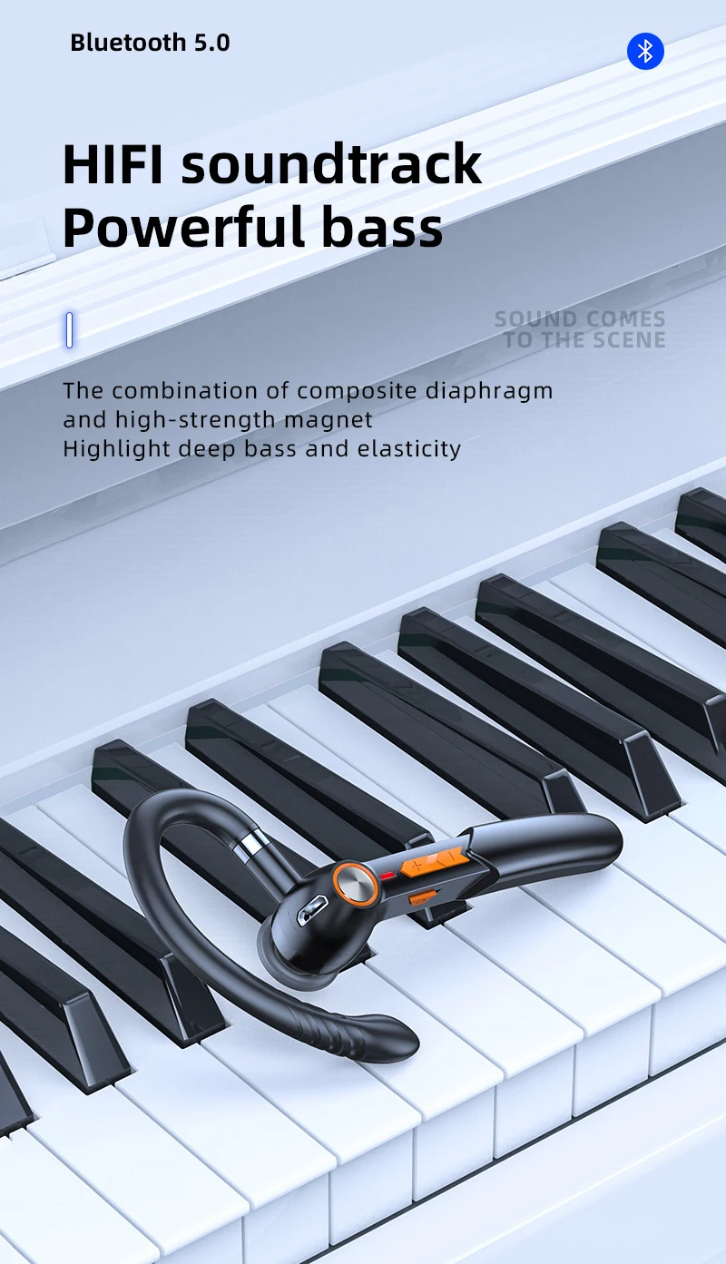 5. Эргономичный дизайн: ушные крючки Bluetooth вращаются на 280 °, подходят для ношения на левом и правом ушах.