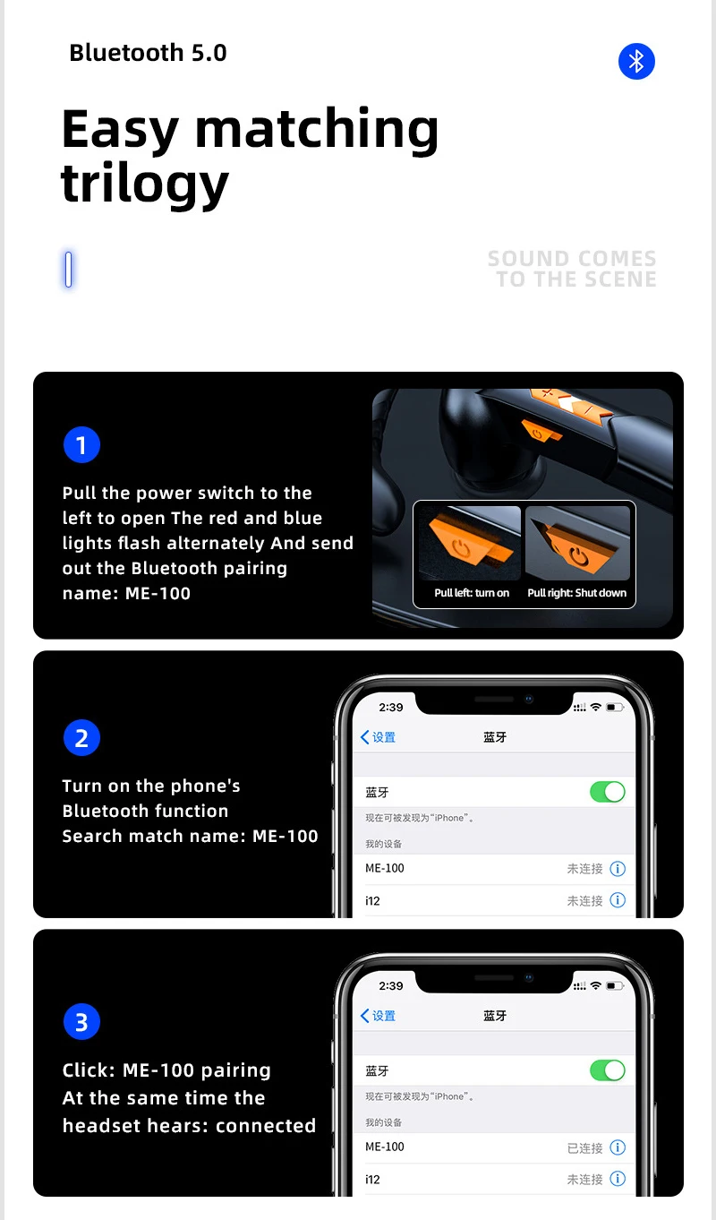 1. Чип Bluetooth 5,0: bluetooth-гарнитура использует новейший чип Bluetooth 5,0, быструю скорость сопряжения, стабильную передачу сигнала, низкое энергопотребление, беспроводной диапазон 33 фута.