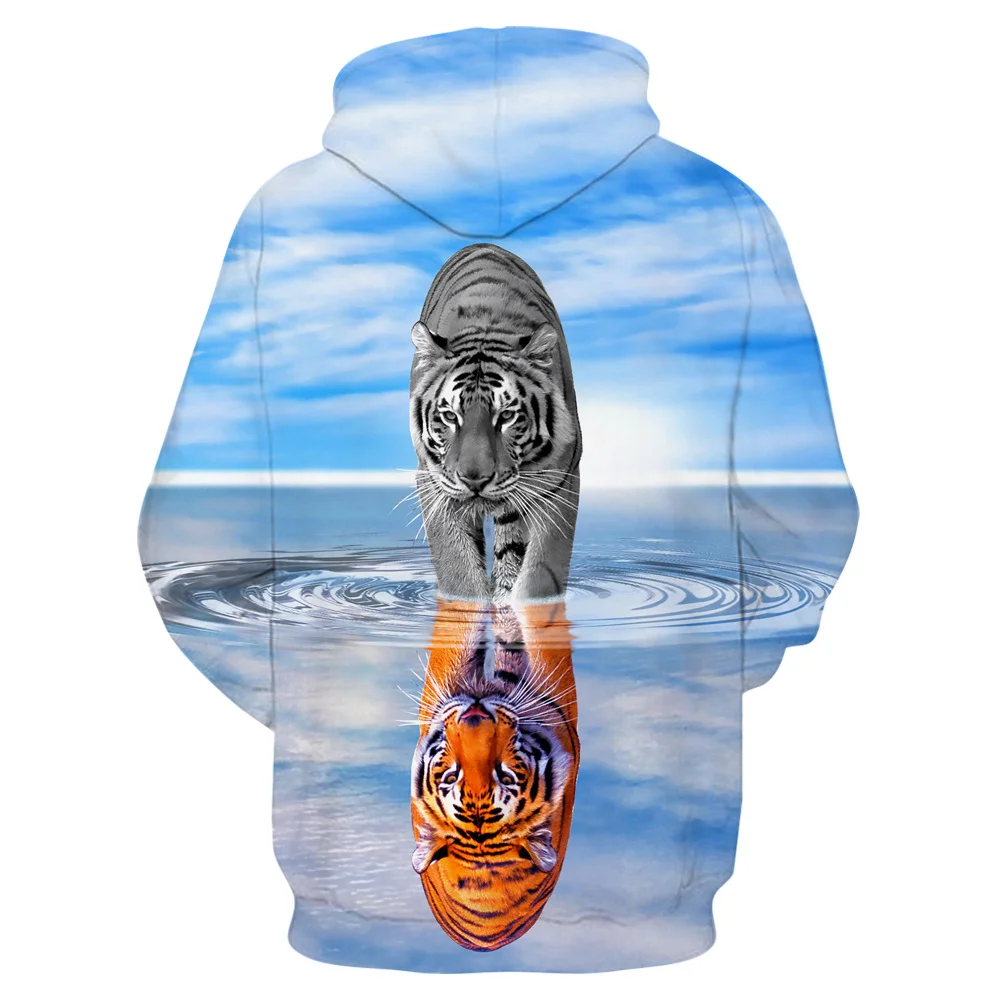Мужские толстовки с капюшоном и 3D-принтом Тигра для мальчиков, мод...