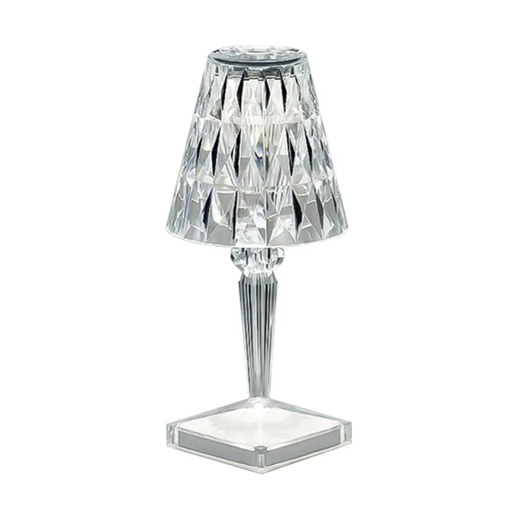 3. Вся настольная лампа изготовлена из акрилового материала, с гладкими линиями и простым дизайном. Алмазная огранка отражает светильник и тени, такие как бриллианты.