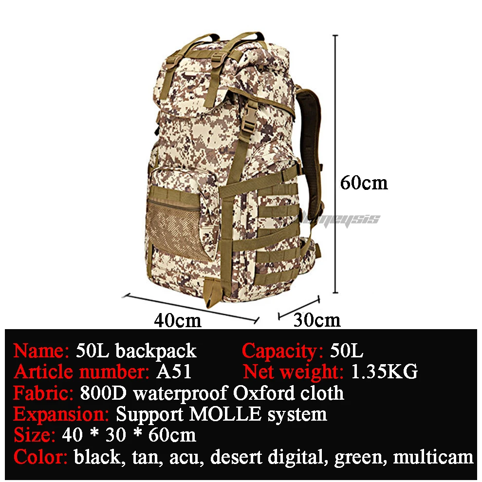 Тактический рюкзак с системой Молле объемом 60 л, военная сумка бол...