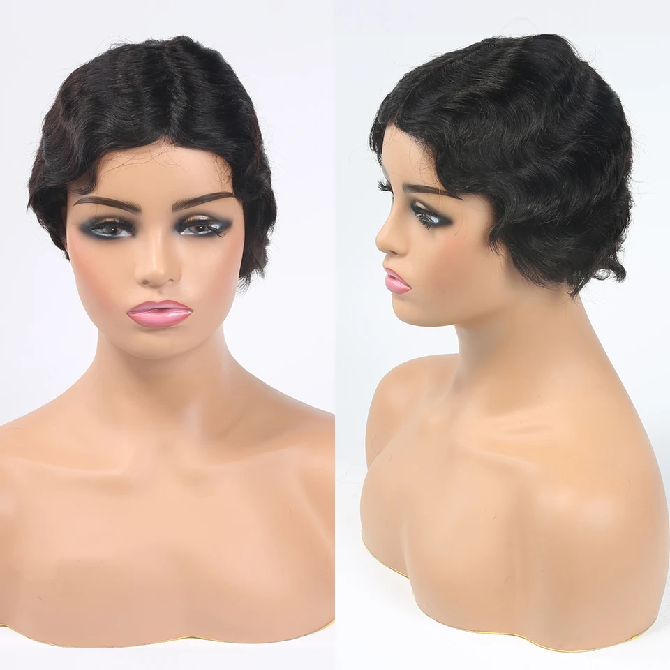 Ретро-волосы короткие прямые волосы боб фальшивые волосы не кружевные передние человеческие волосы парик с челкой для женщин бразильские человеческие волосы парик под искусственными волосами