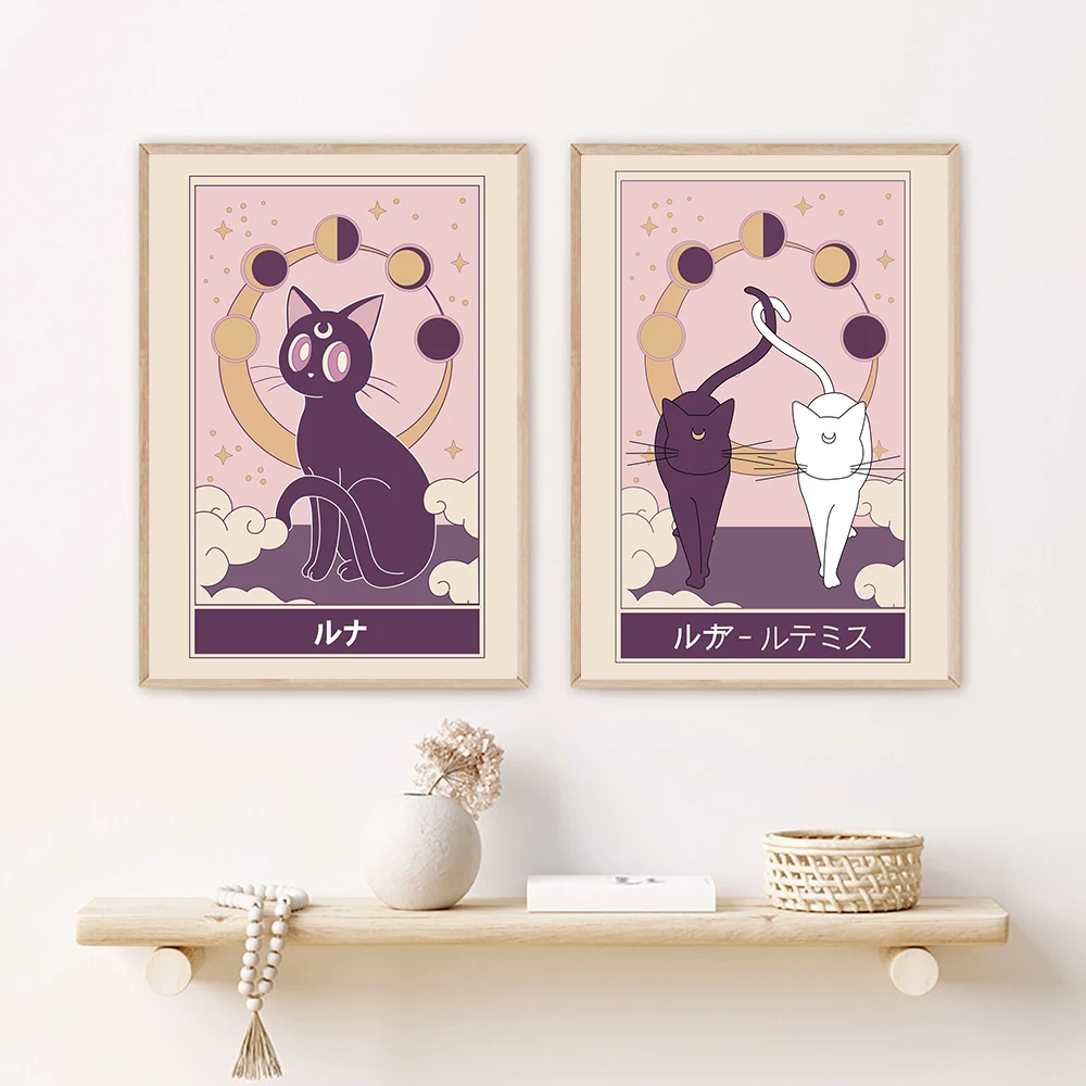 Японская кошка Самурай, кошка, рамен, Декор для дома, мультяшная ку...