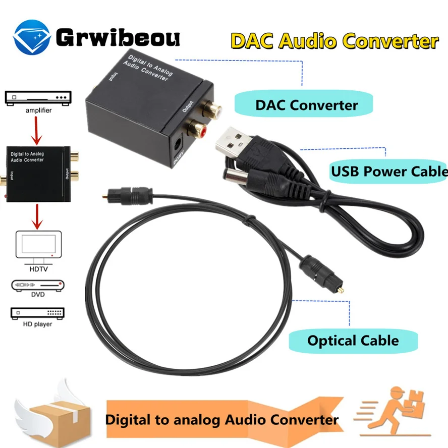 Цифро-аналоговый преобразователь Grwibeou, RCA RL выход, оптический цифровой стерео аудио, SPDIF, коаксиальный аналоговый цифро-аналоговый, USB