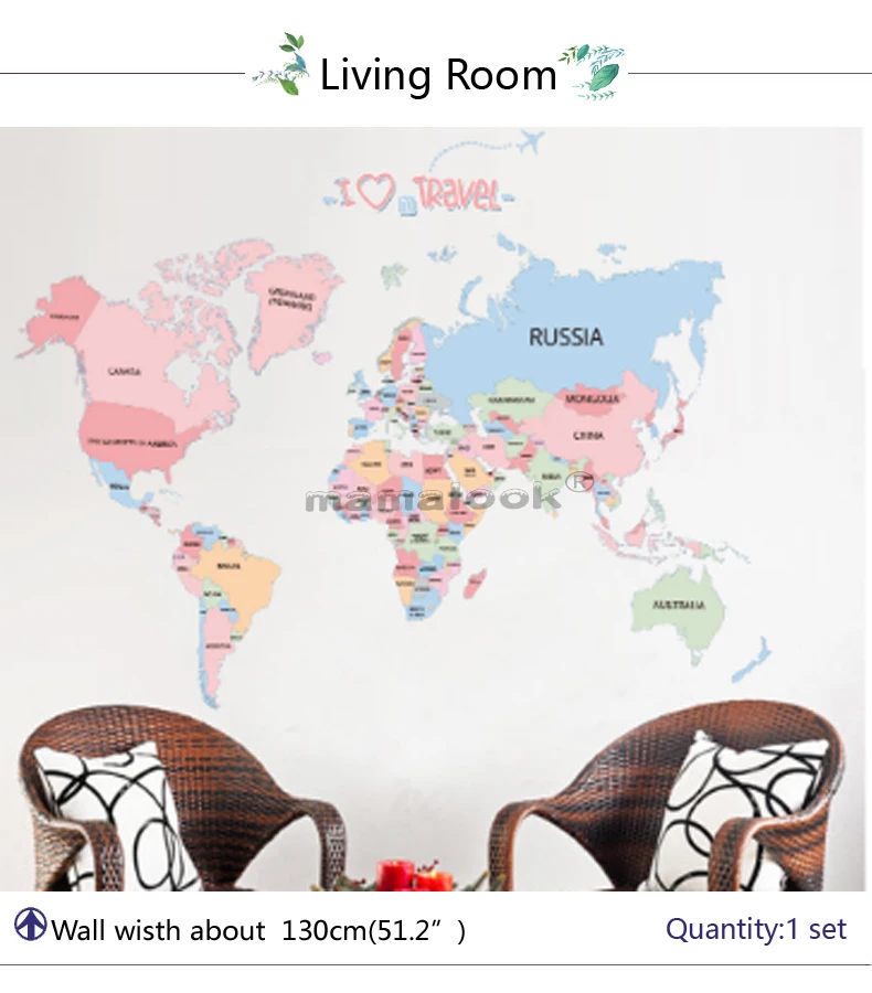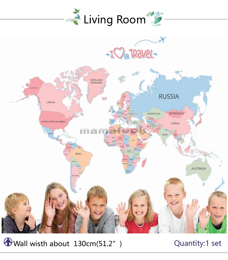 Цветные буквы, Карта мира, самодельные виниловые наклейки на стену для детской комнаты, любовь, домашний декор, офисные художественные переводки, 3D наклейки на стену