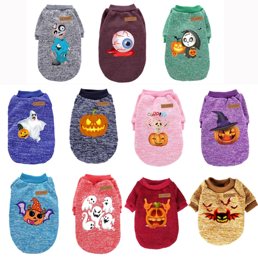 Рубашка для собак на Хэллоуин, теплая одежда с принтом призрака, тыквы, футболки для щенков, куртка для кошек, мягкий пуловер, свитер, одежда для домашних животных, наряд