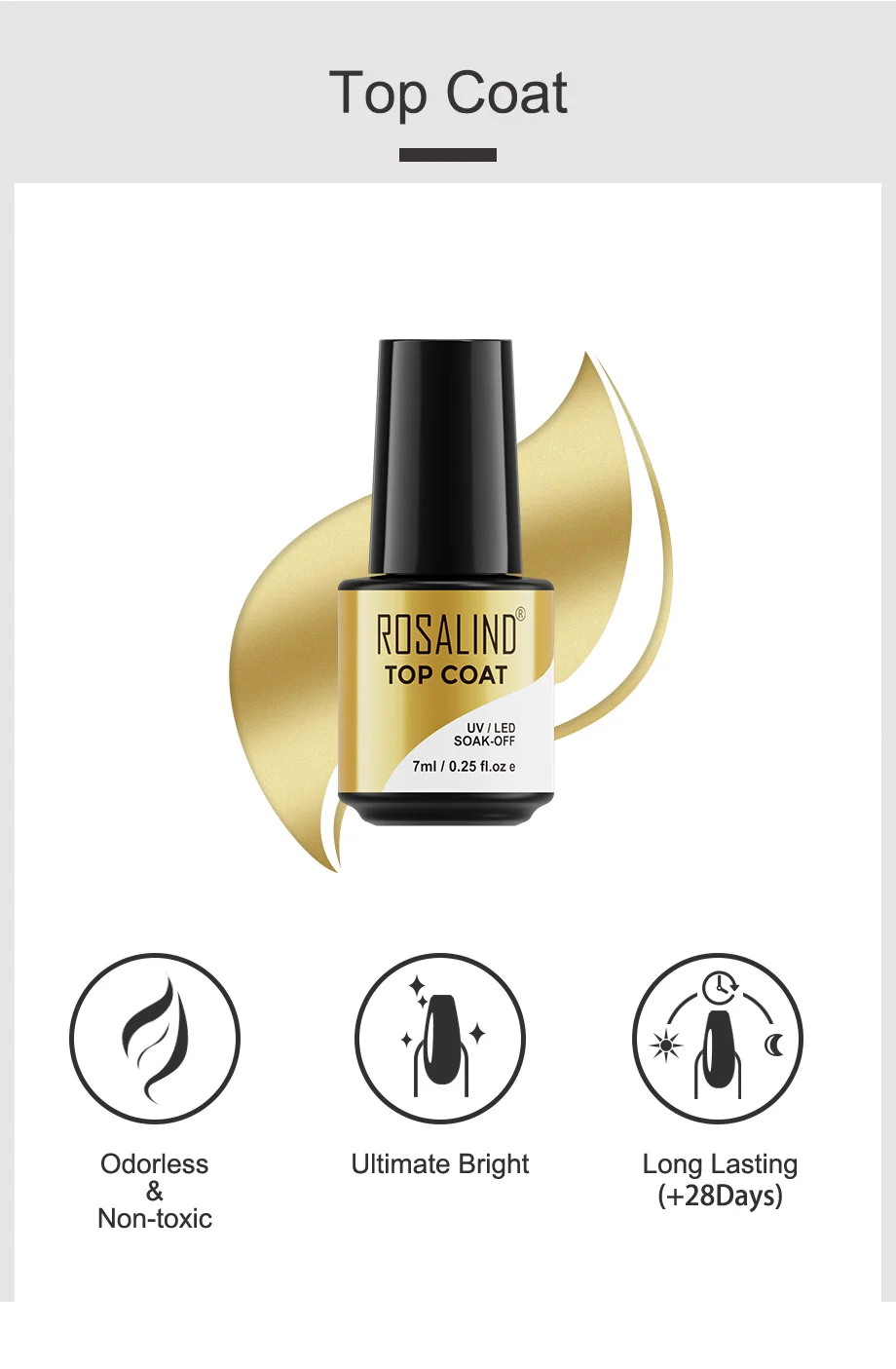 Гибридные Лаки ROSALIND, УФ-Гель-лак, необходимая матовая верхняя часть, все для дизайна ногтей, маникюра, нужен УФ-светодиодный Полупостоянный светильник