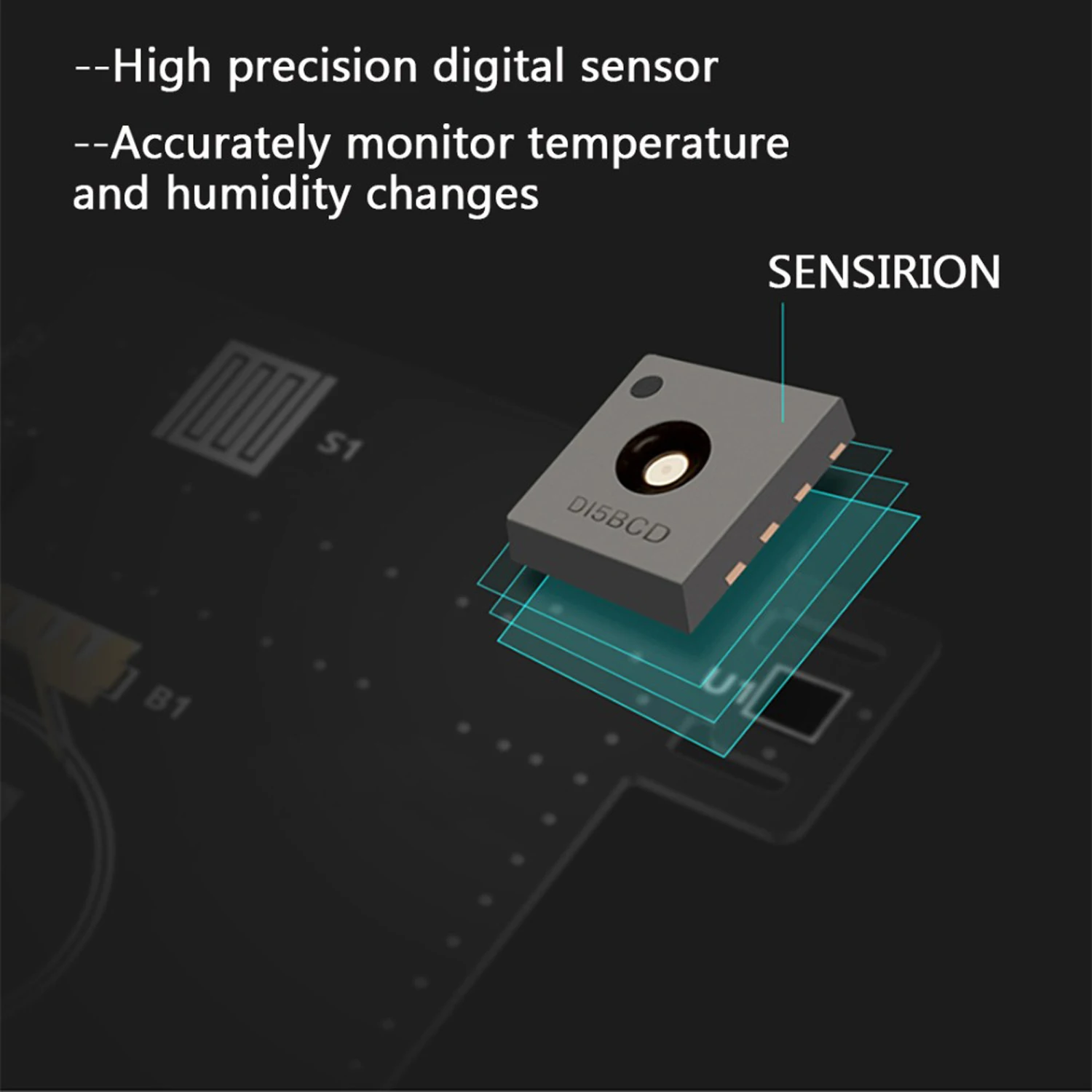 1. Домашний гигрометр, данные могут быть четко прочитаны с различной яркостью и углом. 2. Высокая чувствительность и точный чувствительность из Швейцарии, чувство тонкой смены температуры и влажности дыхание. 3. Выразительность, подчеркивающая уровень комфорта, милая и простая. 4. Низкое потребление экрана, аккумулятор кнопки CR2032 в течение одного года. 5. Встроенный Расширенная влажность датчик температуры и влажности, точность измерения температуры: 0,1 градусов, влажность точность: 0,1 относительной влажности 6. Через приложение Mi, чтобы включить hu mi difier, когда внутренняя hu mi dity слишком низкая, а кондиционер, когда температура в помещении слишком высока СВЕТОДИОДНЫЙ цифровой дисплей, вы можете легко получить температуру, влажность