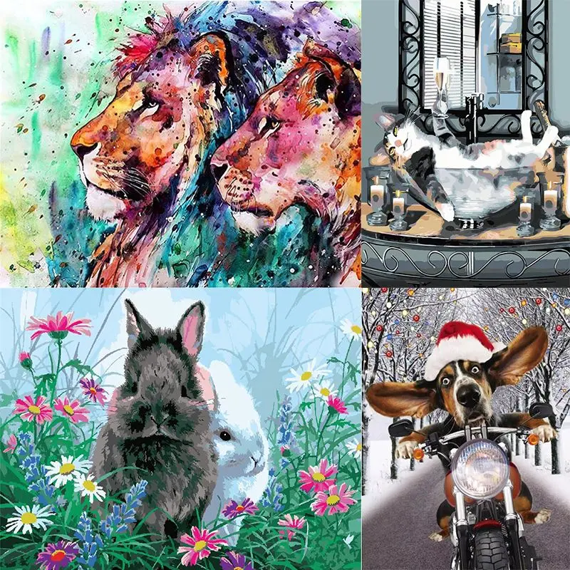 DIY Краски ing по номерам комплект с изображениями цветов и животны...