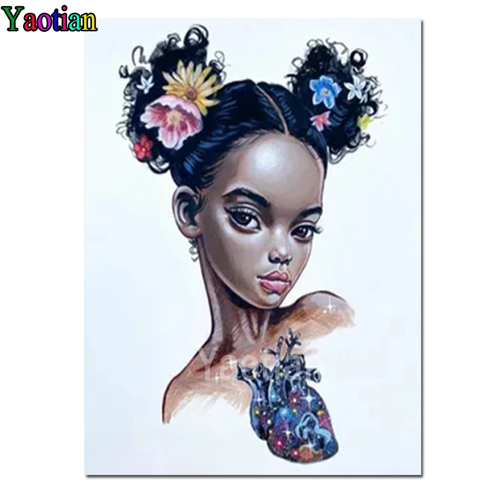 3d круглая вышивка, африканская девушка, сердце, вышивка крестиком, картина Стразы, искусство, мозаика