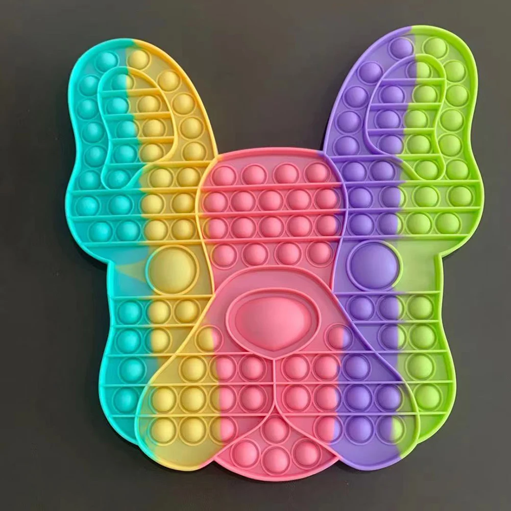 Французский бульдог радужные цвета силиконовые пузырьки для пальцев игрушки антистресс сжималка для взрослых и детей сенсорные игрушки