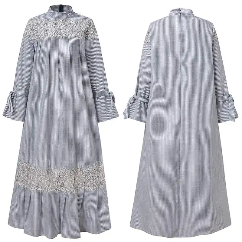 Богемное женское длинное платье, винтажное платье с отложным воротником и длинным рукавом, вечерние платья 2021 VONDA, лоскутный свободный сарафан, женские повседневные платья