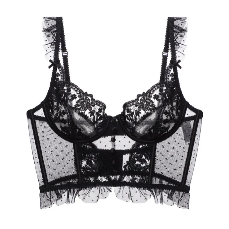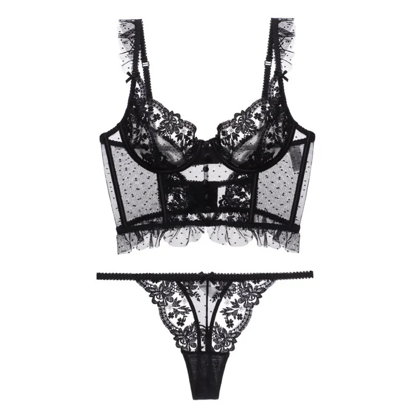 Комплект кружевного бюстгальтера высокого качества для женщин, комплект кружевного нижнего белья с вышивкой, цветочные Бюстгальтеры + трусики, дамские черно-белые сексуальные стринги, комплект нижнего белья, новинка