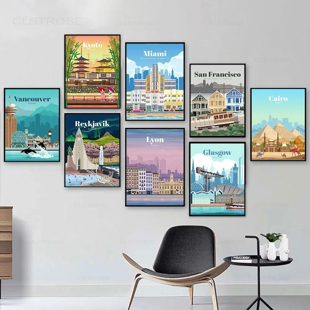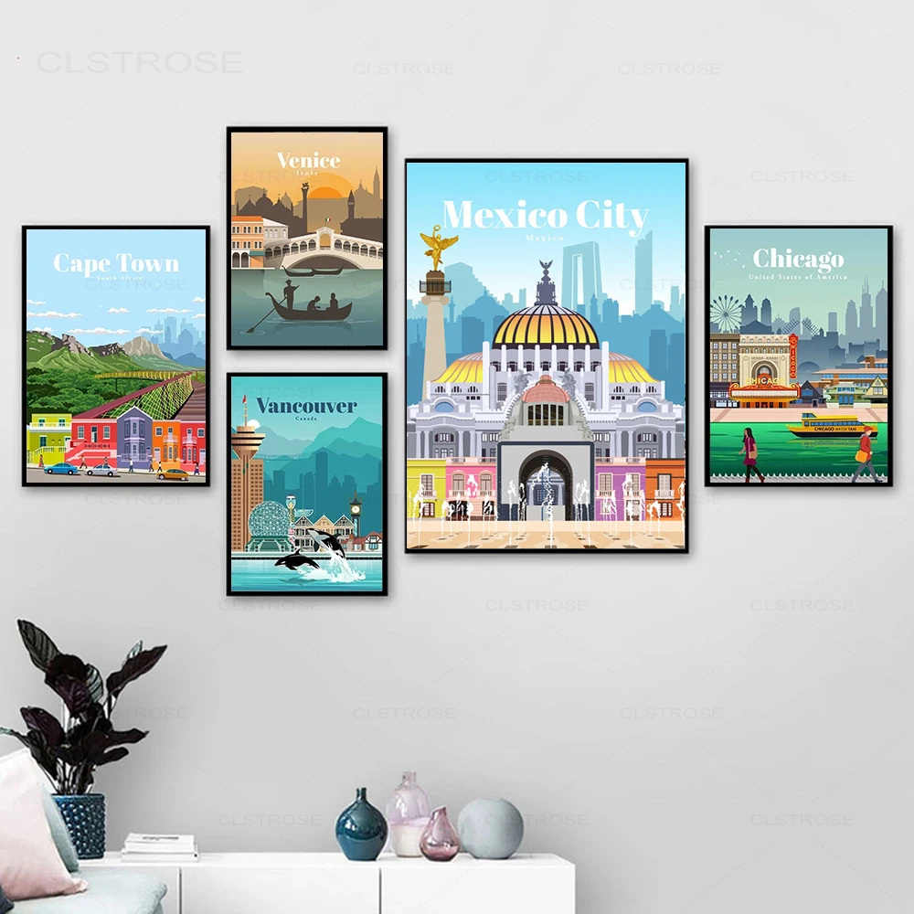 Дорожный постер известного города, Картина на холсте с изображением...