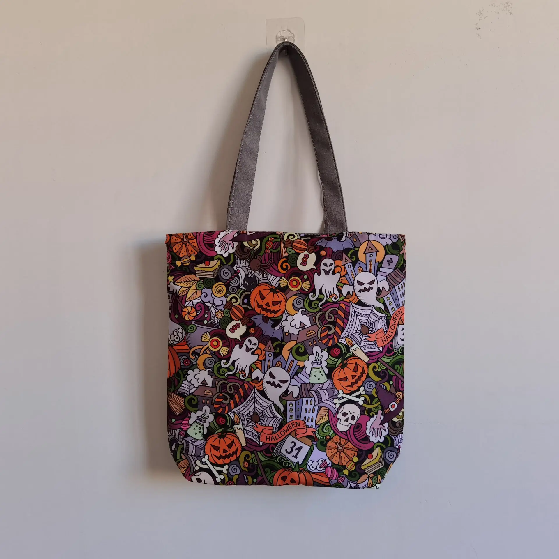 Подарочная сумка для Хэллоуина с изображением тыквы, призрака, черепа, модная сумка на плечо, вместительная сумка для покупок, портативная дорожная сумка