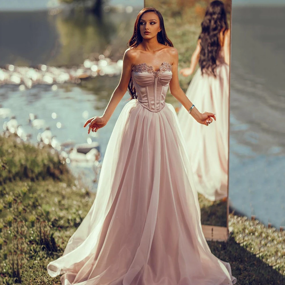 UZN розовое атласное платье из органзы, платье для выпускного вечера, ТРАПЕЦИЕВИДНОЕ ПЛАТЬЕ с завязкой, корсет, вечерние платья по индивидуальному заказу, вечерние платья Дубая