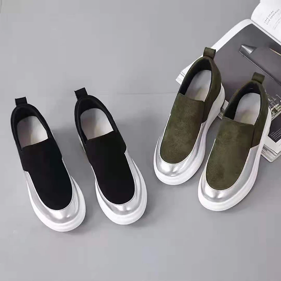 Кроссовки женские без шнуровки, Вулканизированная подошва, спортивные лоферы, однотонная обувь
