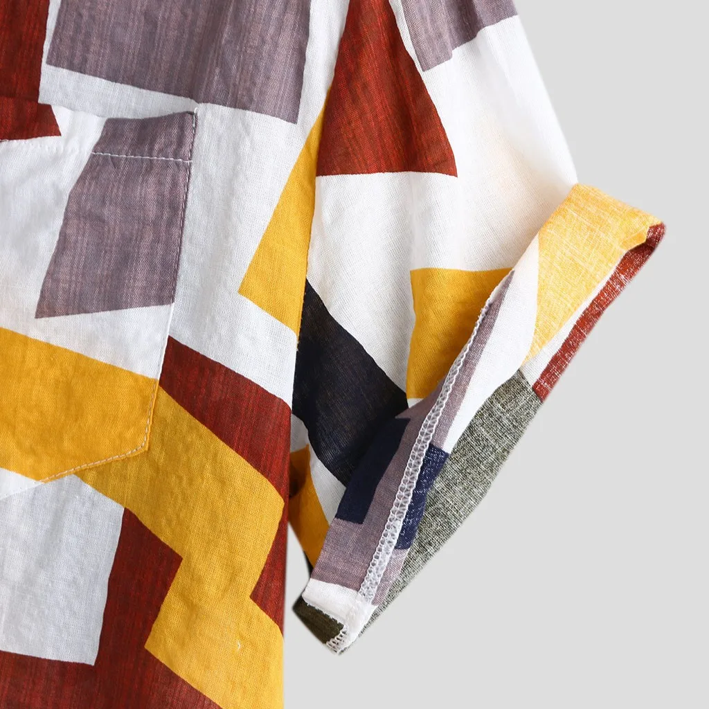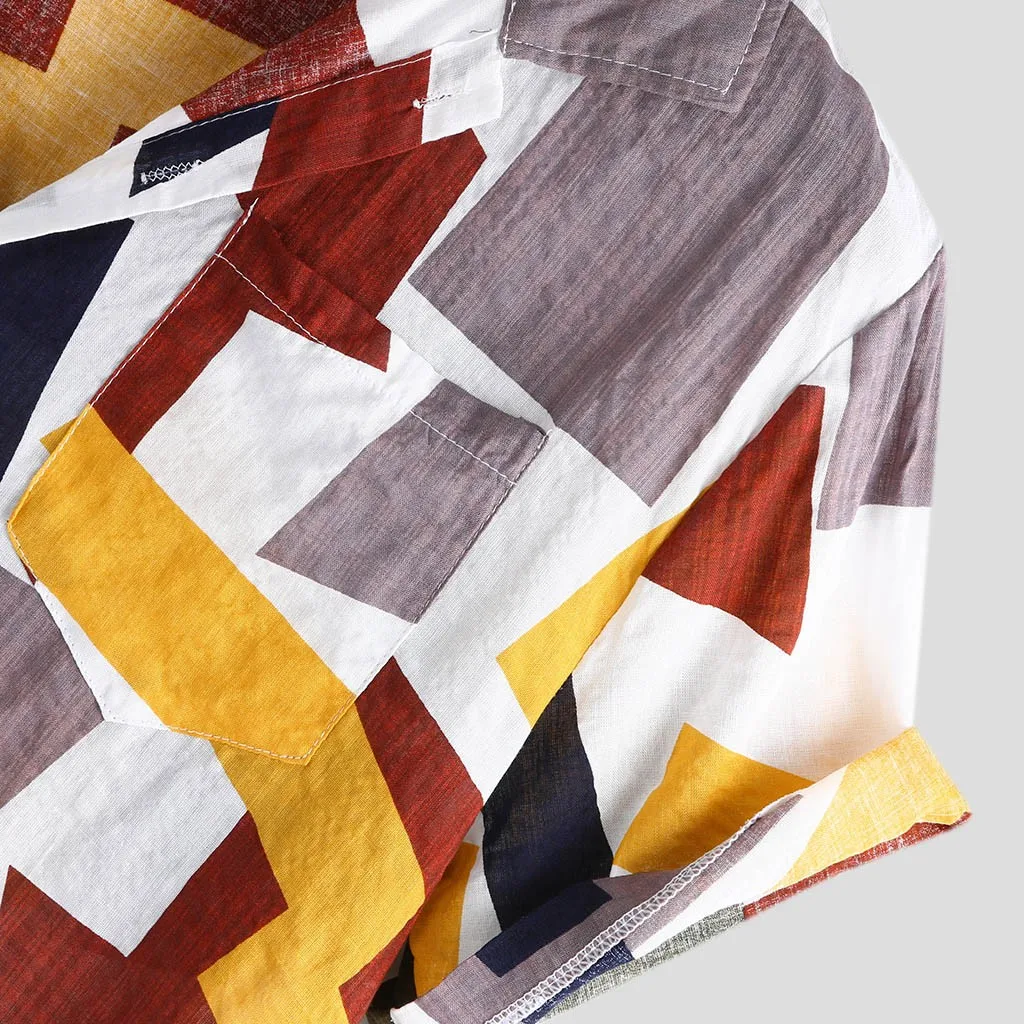 Мужская рубашка с отложным воротником, свободная рубашка с коротким рукавом, гавайская Свободная рубашка с цветным блочным принтом, лето 2019