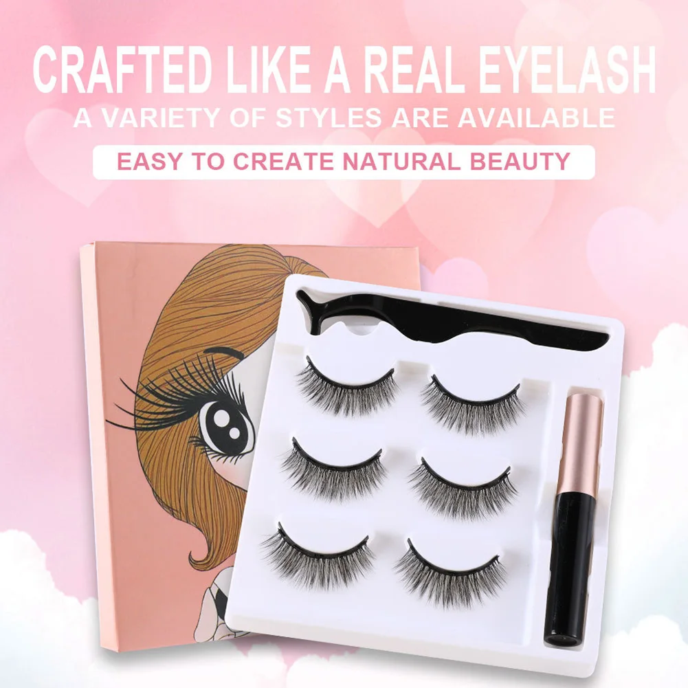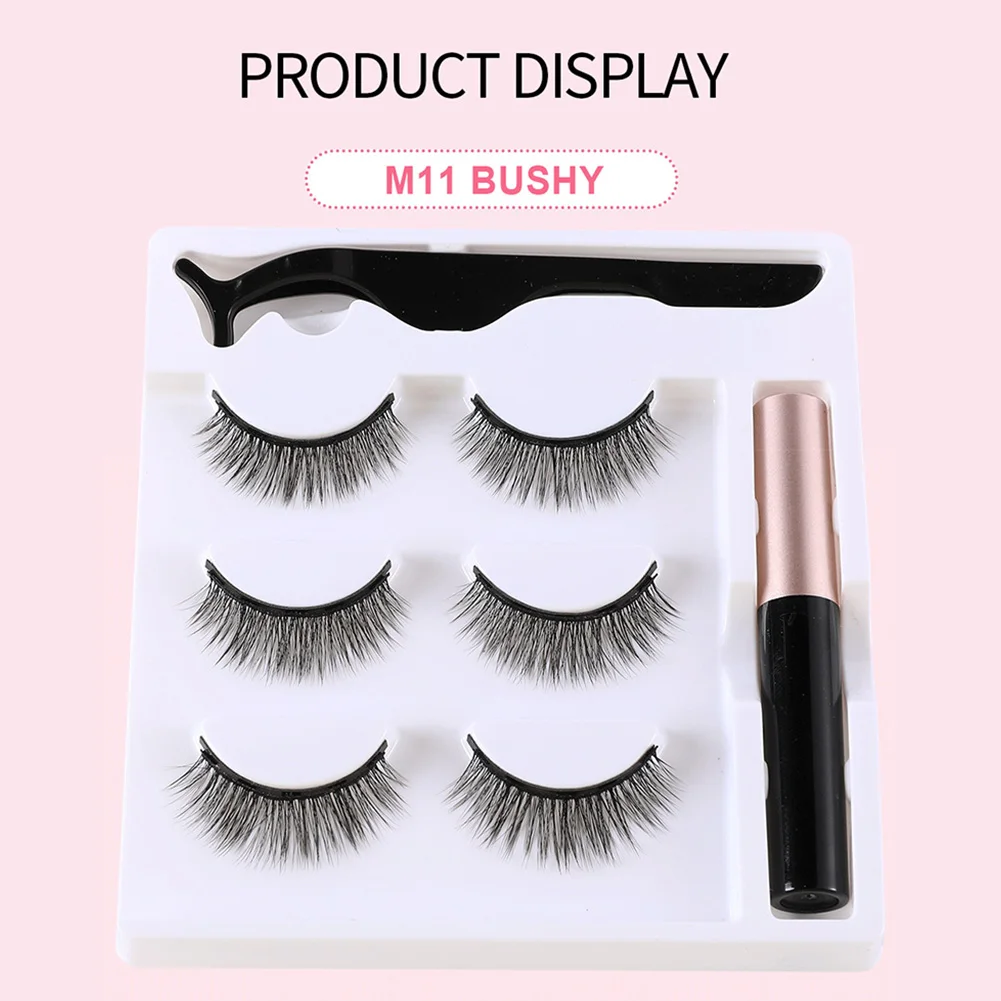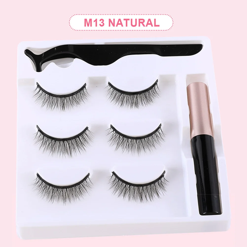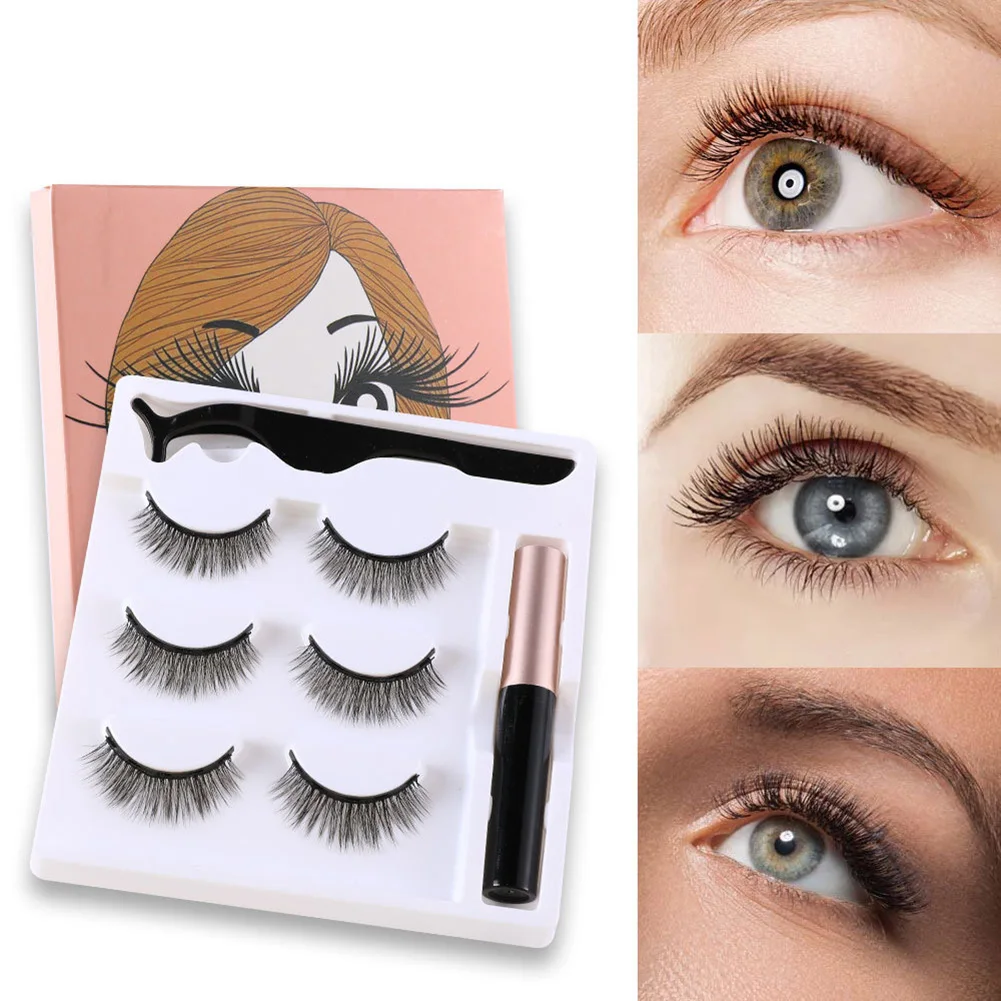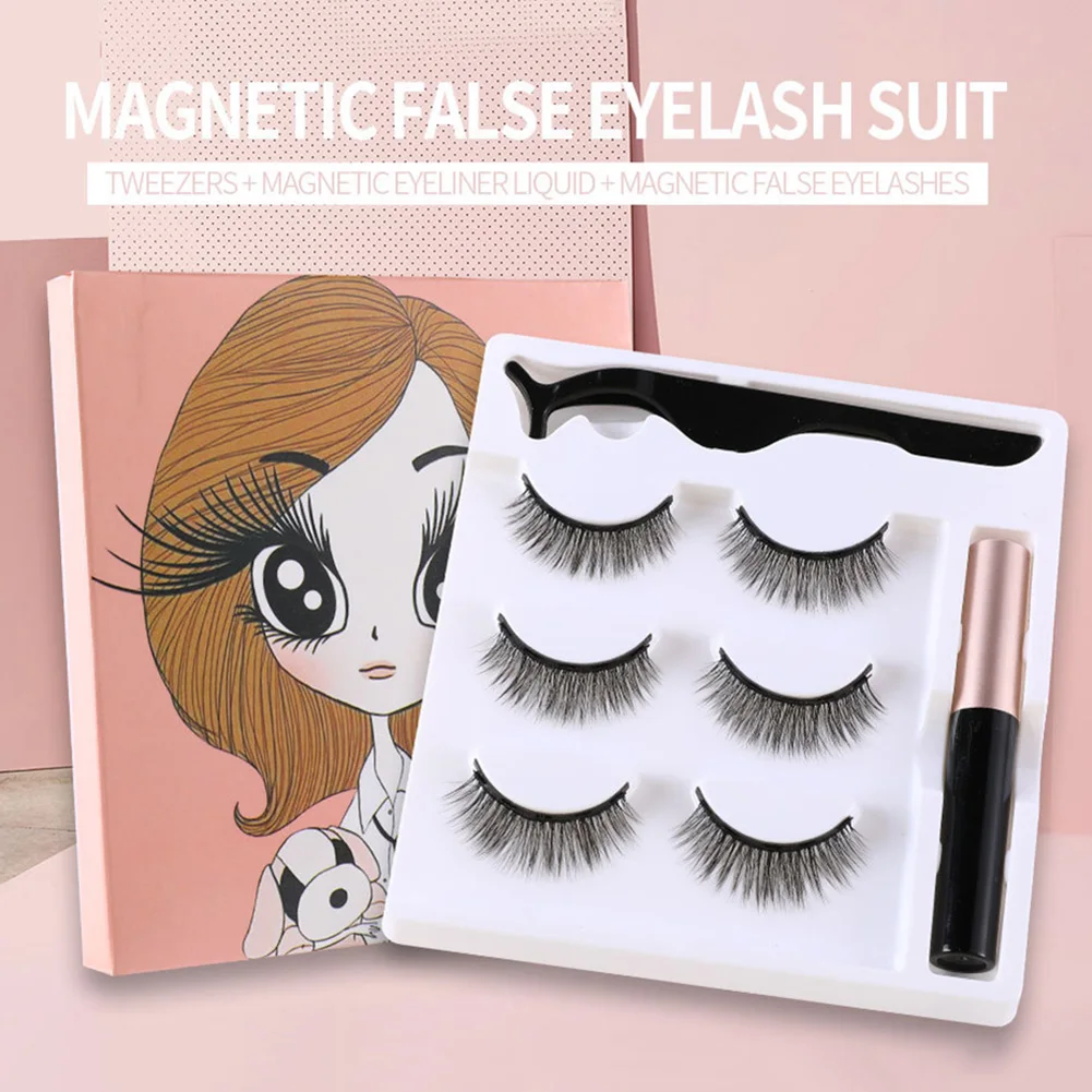 3 пары магнитных ресниц с комплектом подводки для глаз искусственный набор без клея Многоразовые Накладные ресницы естественный вид