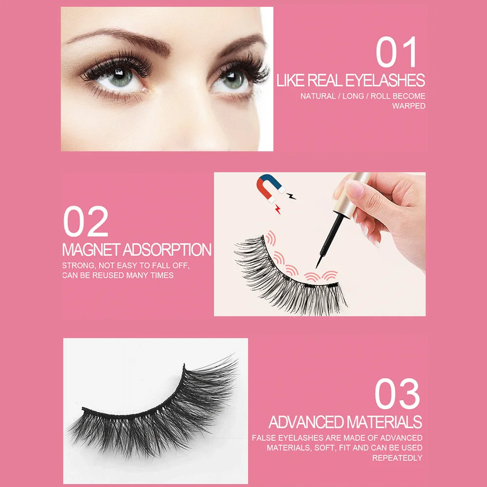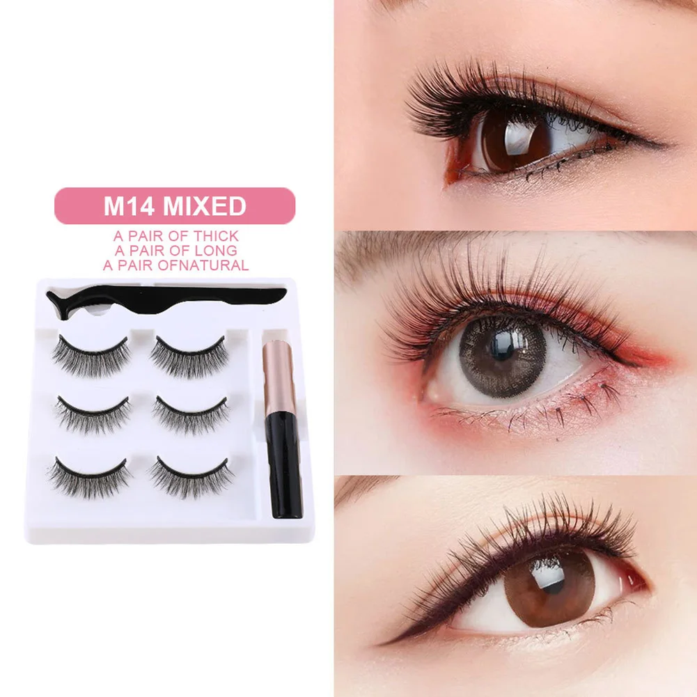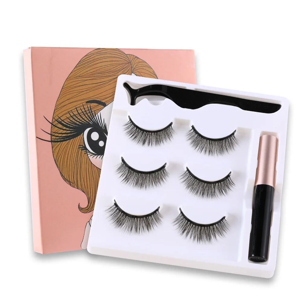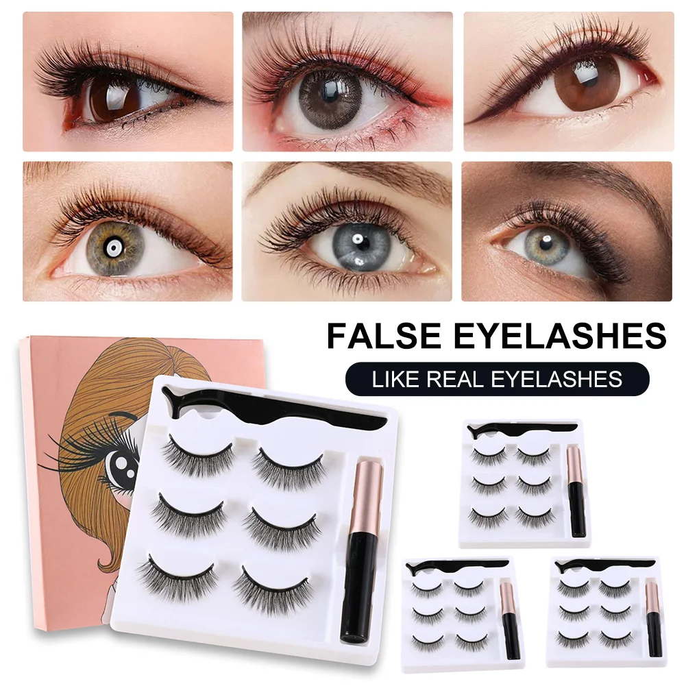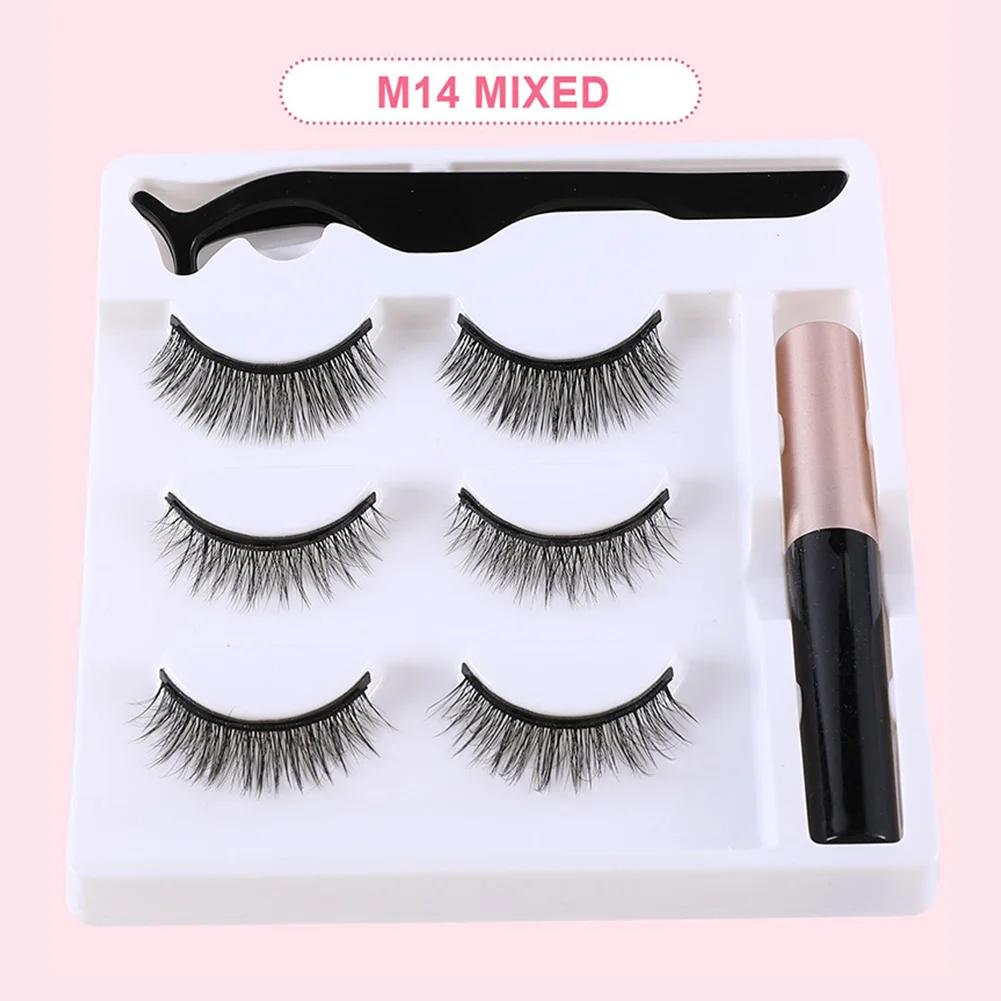 3 пары магнитных ресниц с комплектом подводки для глаз искусственный набор без клея Многоразовые Накладные ресницы естественный вид