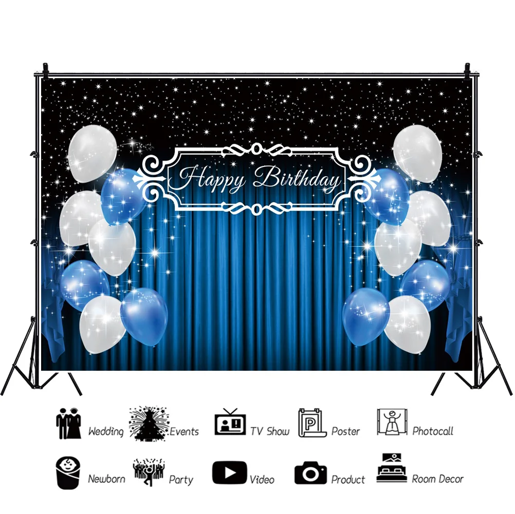 Фон для фотосъемки с изображением розовых голубых воздушных шаров звезд занавесок детских дней рождения