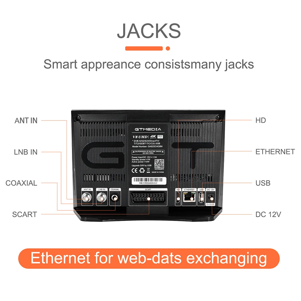 Спутниковый ресивер GTMEDIA V8 UHD, 4K Ultra HD DVB-SS2S2XT2 H.265, Встроенная Wi-Fi ТВ-приставка, слот для карты CA, обновление V8 Pro2