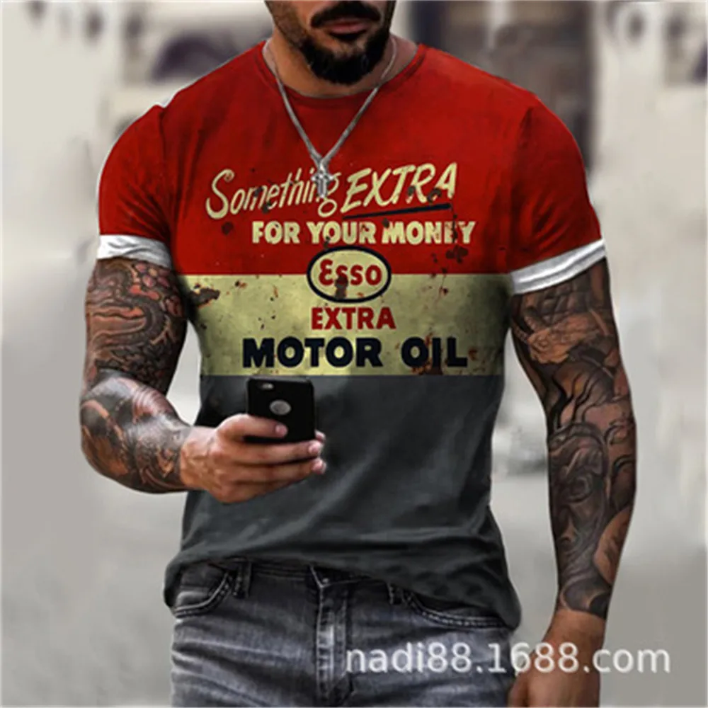 Футболка мужская графическая с принтом мотора масла, рубашка, уличн...