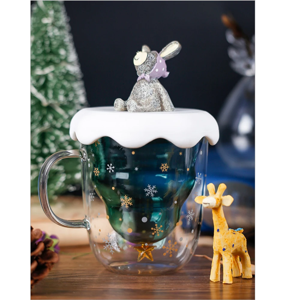 Кружка с изображением рождественской звезды желаний, креативная термостойкая Стеклянная Двойная прозрачная кружка для офиса, кофе, пива, милого медведя, молока, праздничный подарок, 2021