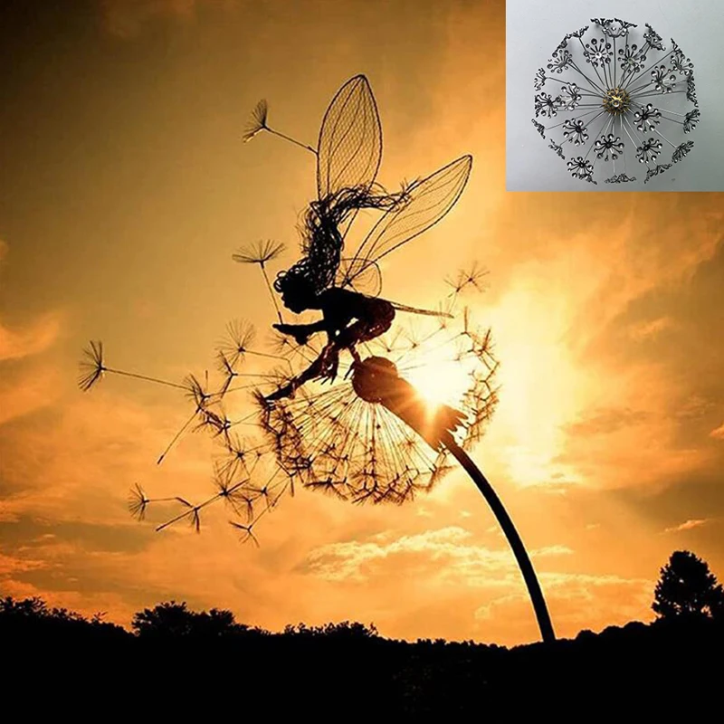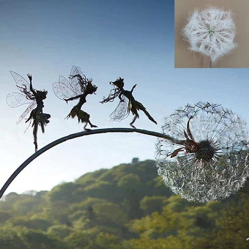 Декоративный садовый Декор, феи и Одуванчики, 1 шт., металлический газон, пейзаж, скульптура, украшения для сада