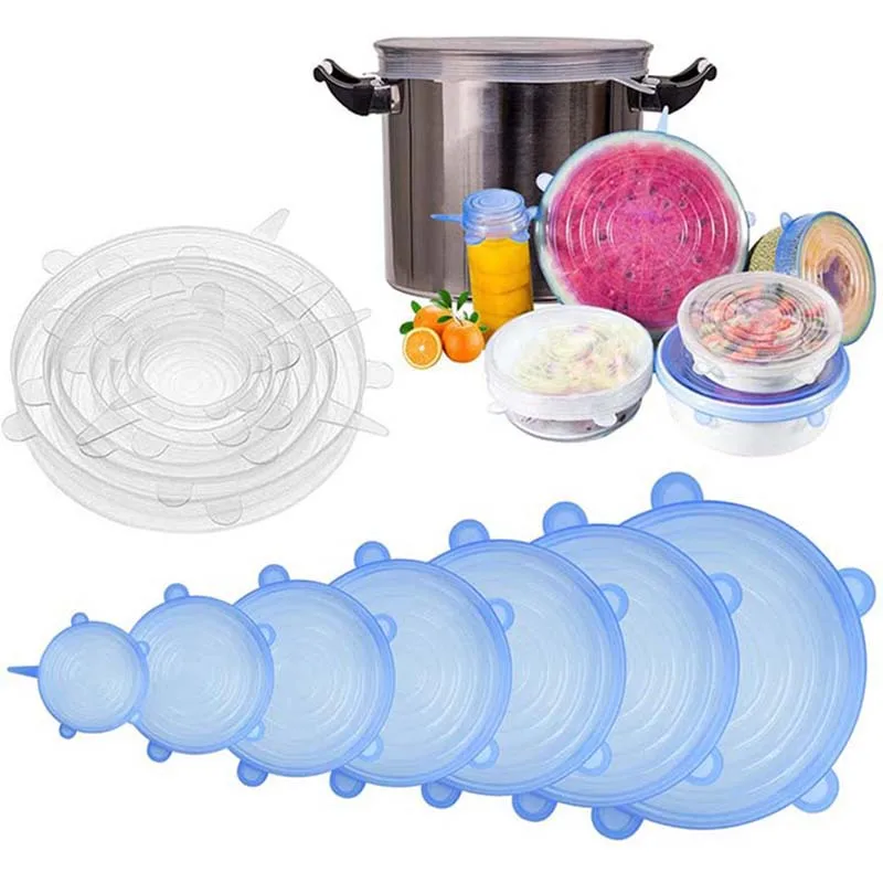 1. Силиконовые эластичные чехлы разных размеров:6 шт содержит 6 сохраняющий свежесть Чехлы, разных размеров: 2,4, 3,6, 4,4, 5,9, 6,7, 8 дюймов. Растягивающаяся крышка легко помещается в различные контейнеры, такие как миски, чашки, горшки, кружки, Баночки, баночки и даже может использоваться для покрытия половинчатых дынь или арбузов.