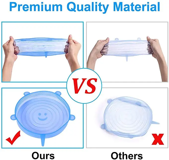 2. Безопасный силиконовый материал для хранения пищевых продуктов:Безопасность-наш главный приоритет. Силиконовый растягивающийся чехол пищевой и полностью нетоксичный. Убедитесь, что каждая пищевая Эластичная Силиконовая крышка, которую вы используете, безопасна.