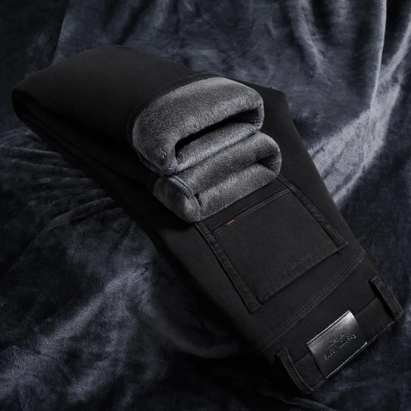 Мужские прямые джинсы с флисовой подкладкой, черные или синие утепленные брюки из денима, в классическом деловом стиле, для зимы, 2021