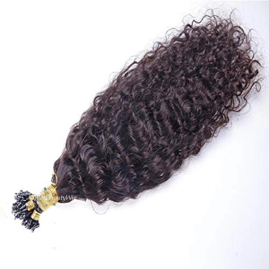 Волнистые человеческие волосы на микро-петлях, Предварительно Связанные бразильские волосы с микро-соединением, вьющиеся микро-бусины для наращивания волос 100 г 100 прядей