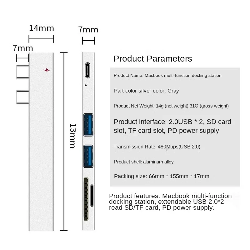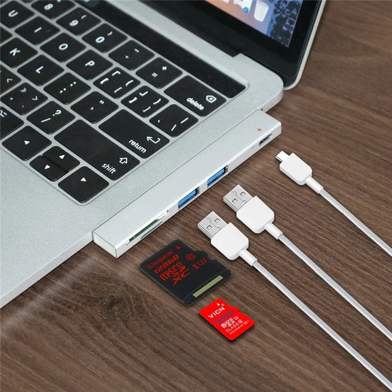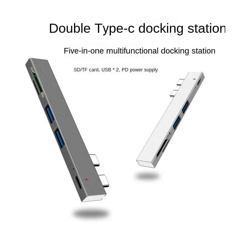 Dual head type-C hub для MacBook Pro, & nbsp; Расширенный USB2.0 & amp; SD / TF Reader & amp; Type C (источник питания) функциональный концентратор, уникальный и новый дизайн.