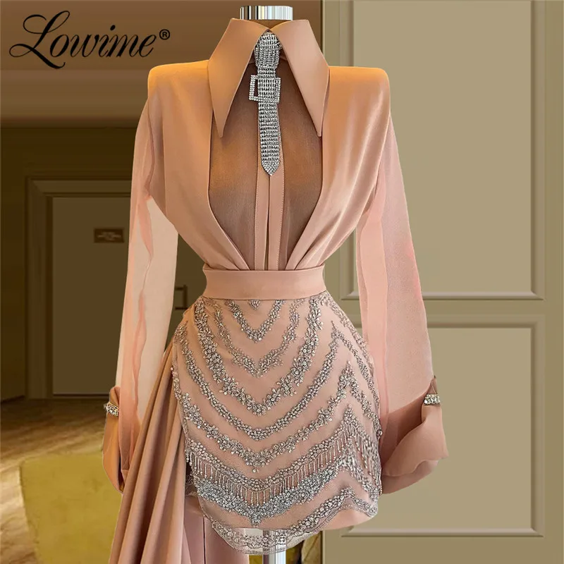 Женское вечернее платье Lowime, розовое формальное платье с глубоким вырезом, расшитое бисером и кристаллами, индивидуальный пошив, коктейльное платье Дубая для выпускного вечера, 2021
